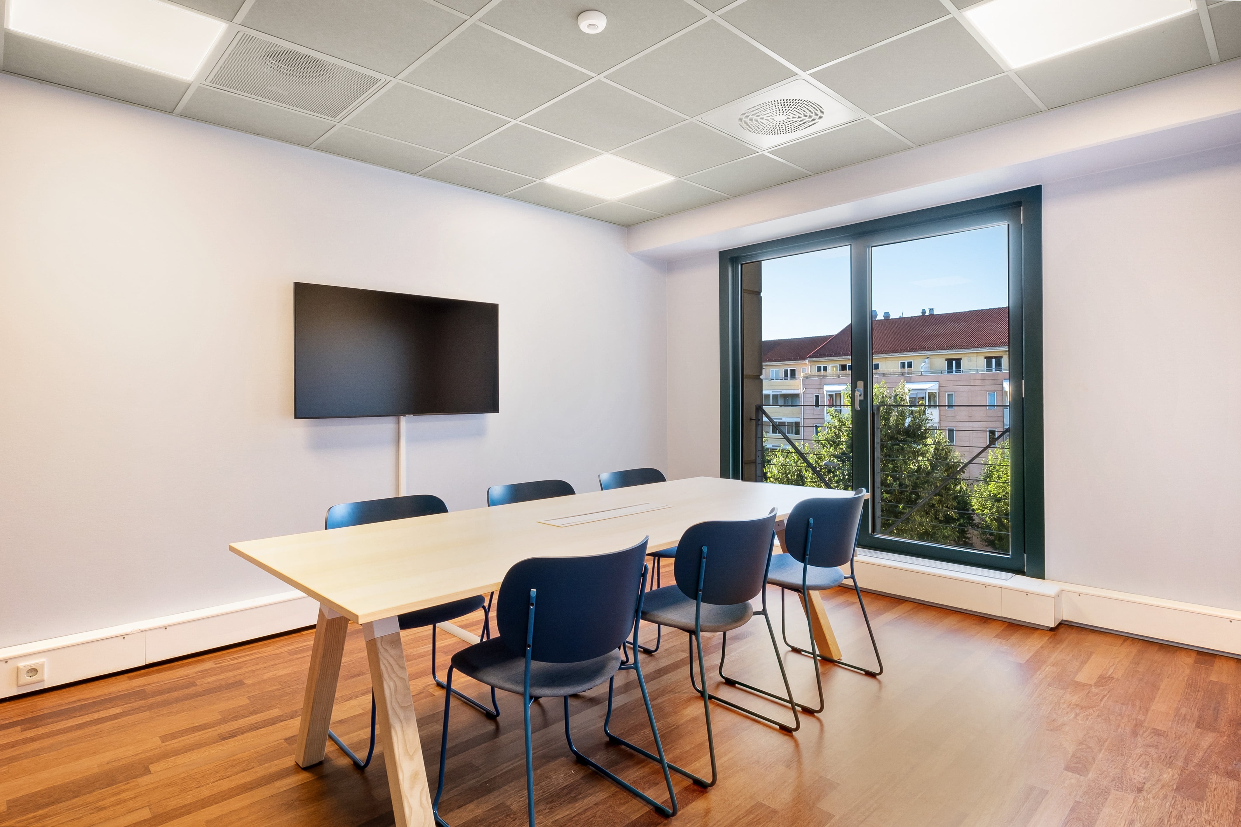 Møterom for 8 personer - utstyrt med TV og videobar m/ lyd og kamera for konferansemøter