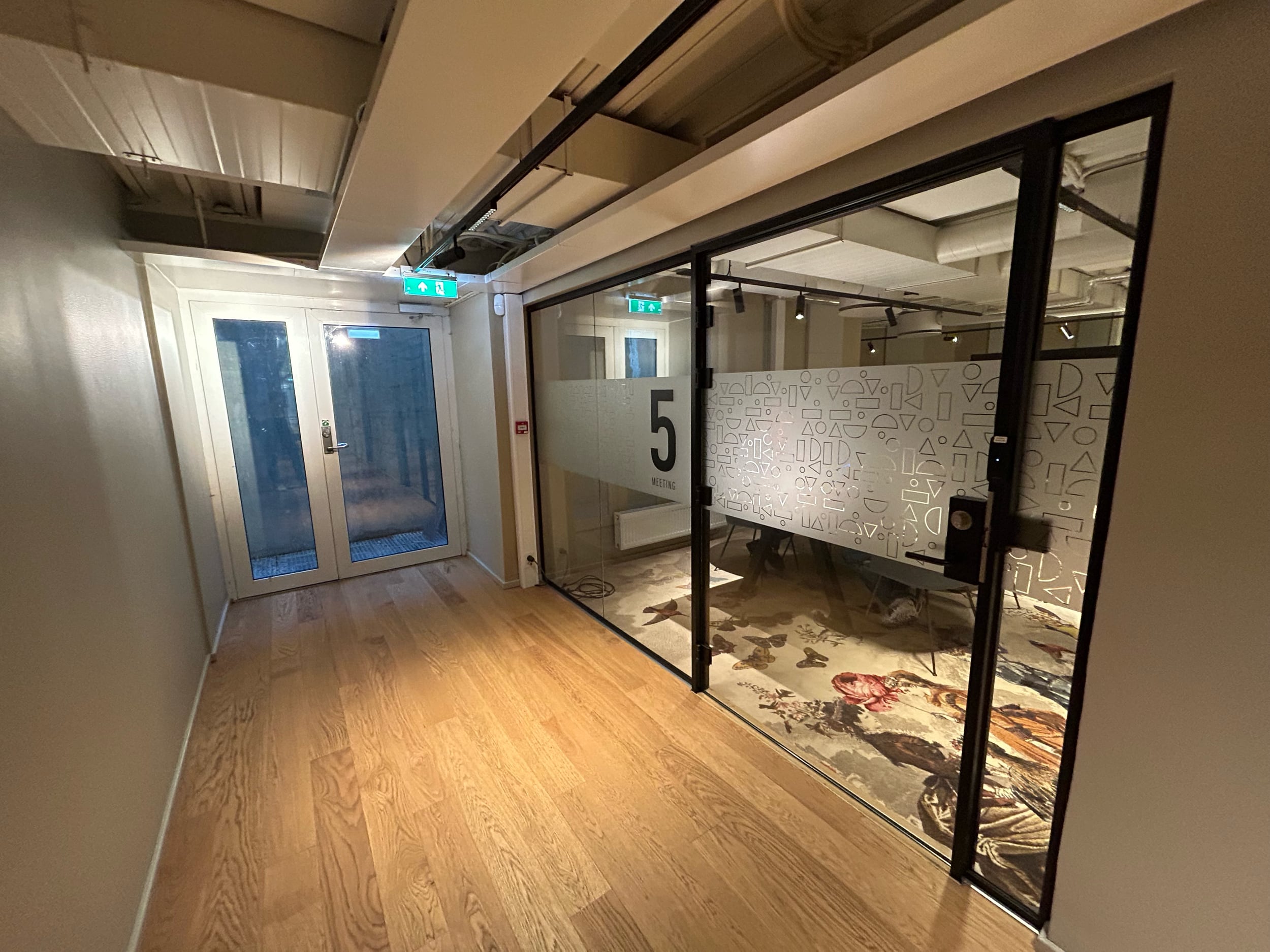 Møterom for 4 personer - utstyrt med TV og videobar m/ lyd og kamera for konferansemøter.